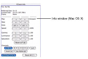 The FCheck Info window is unique to Mac OS X. Use it to control and modify the image or animation.